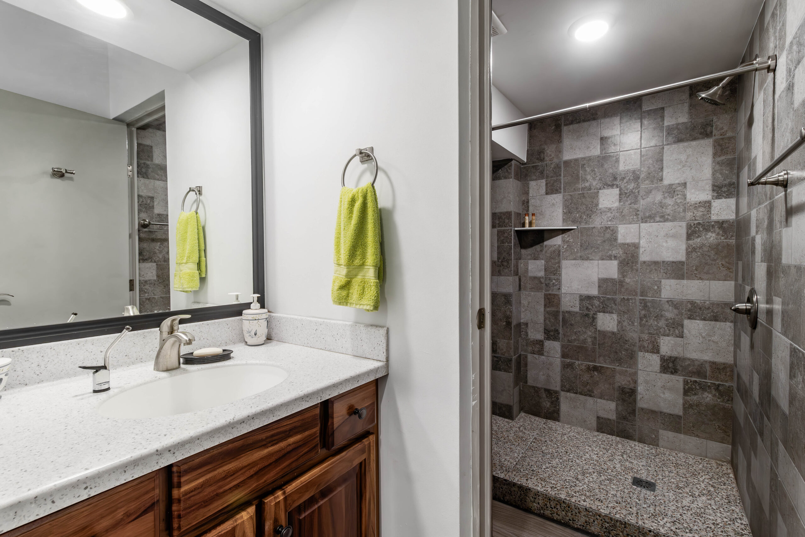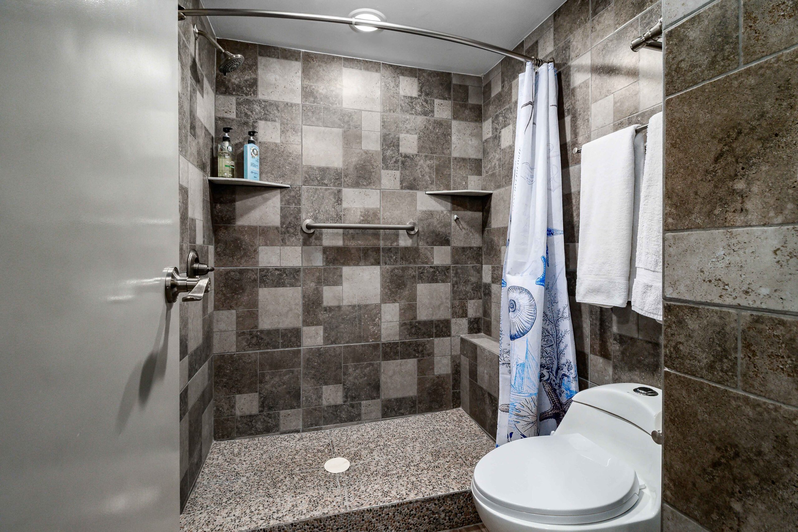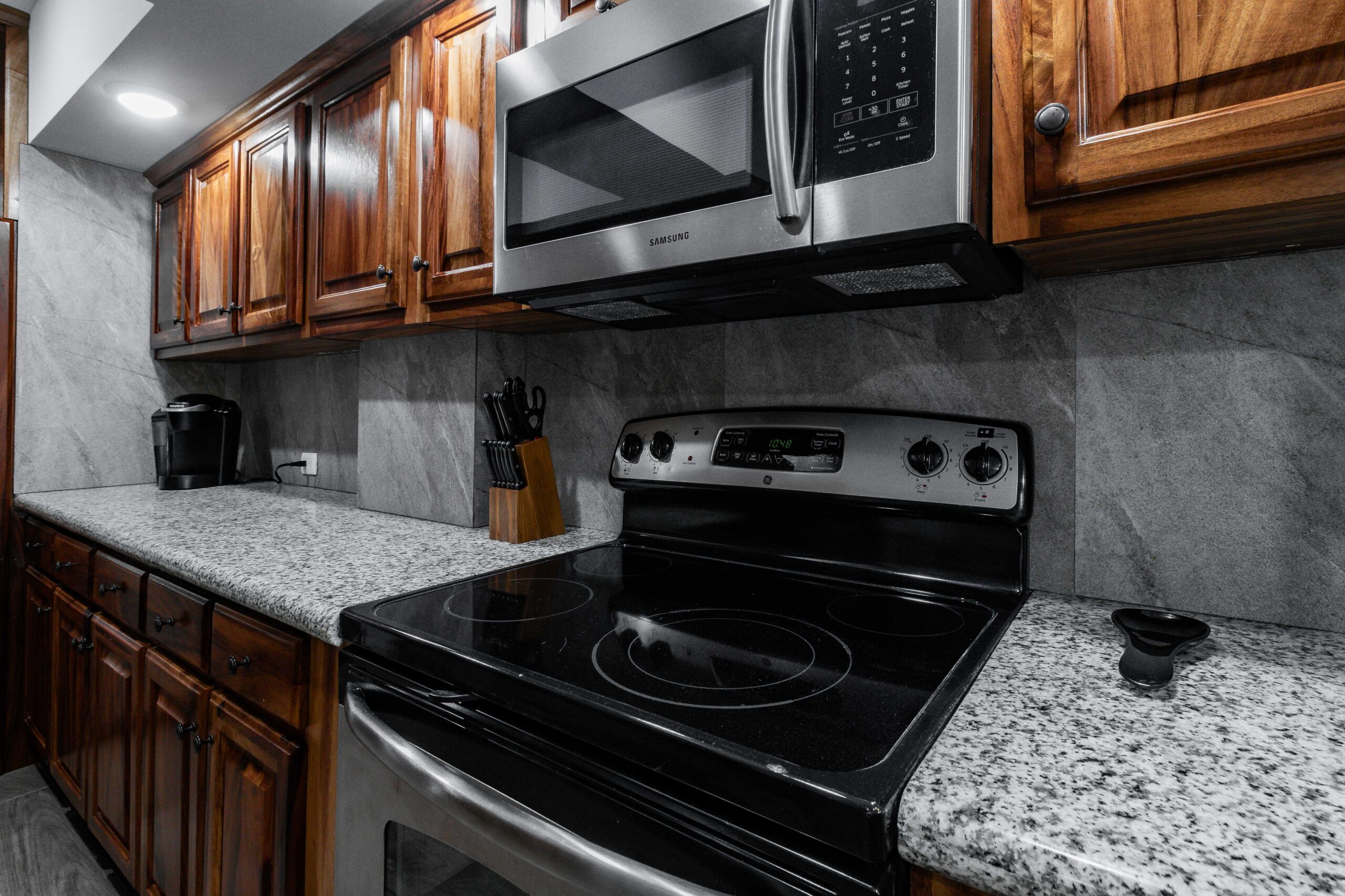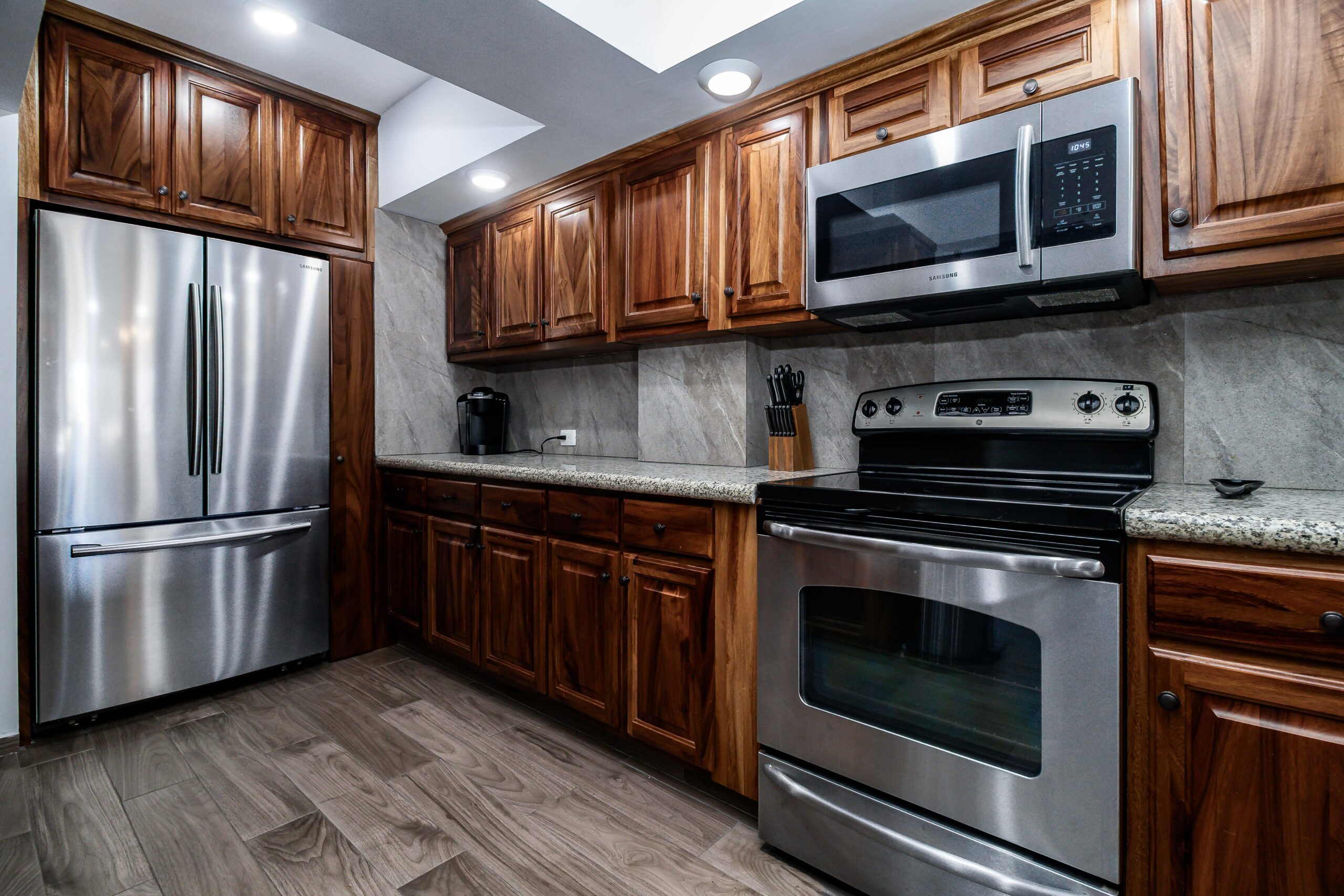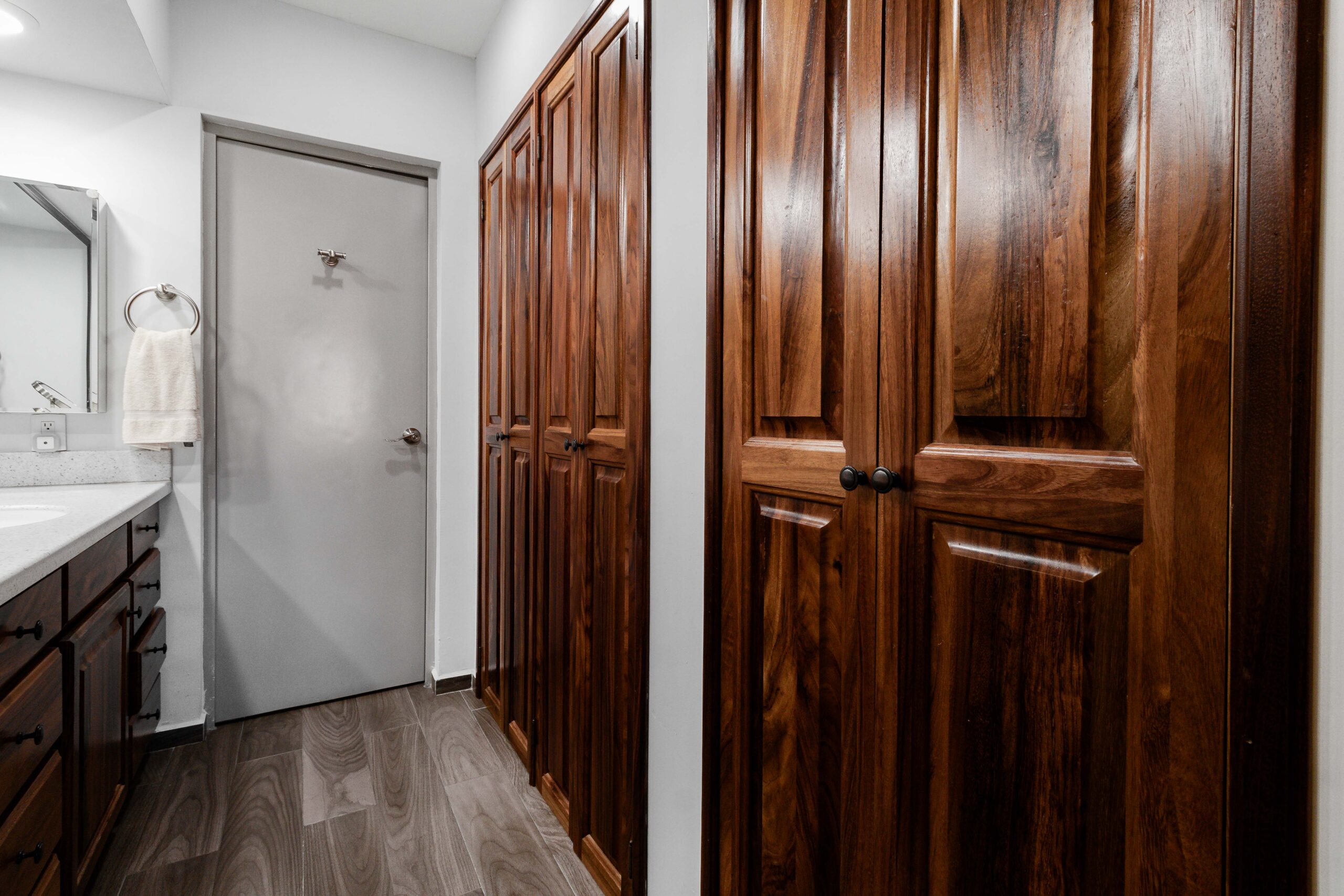 Situated on the second floor and accessible via elevator through the main hotel lobby, this turnkey unit features smooth, modern walls, rich Parota wood cabinetry and finishes throughout the kitchen and bathrooms, sleek granite countertops, and updated tile flooring that mimics the warmth of hardwood.